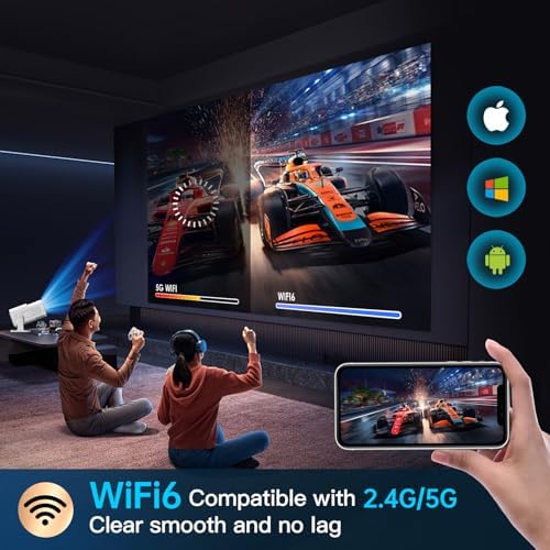 【Latest Wi-Fi 6 technology】Smart Projector with wifi not only compatible with 2.4G/5G , but is also faster and smoother than conventional 2.4G/5G, without lags,let you watch movies more smoothly and comfortably.