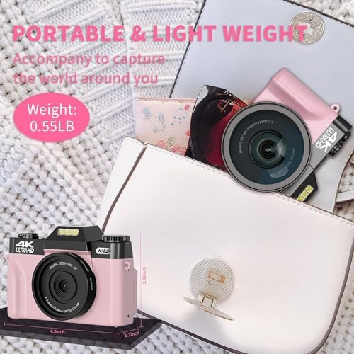 4K &56MP Pink Digital Camera for Photography and Video
