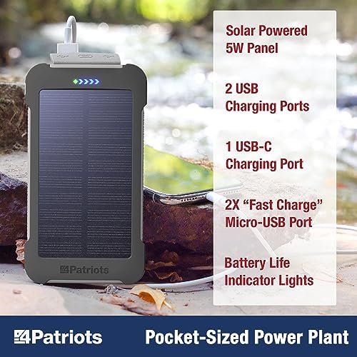 4Patriots Patriot Power Cell CX: Portable Solar Power Bank – Rechargeable External Battery with 3 USB Ports, 8,000 mAh Lithium Ion Battery, LED Flashlight, Great for Camping, Hiking or Emergencies