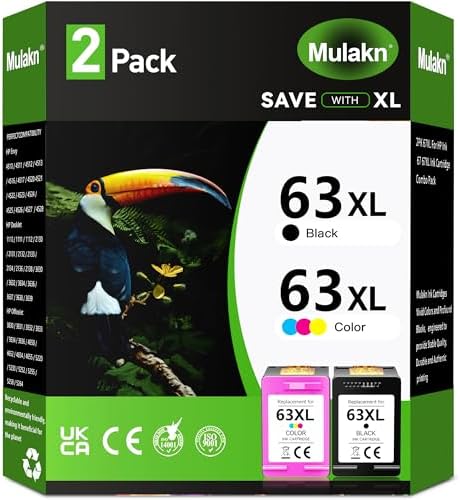 Product Name: Mulakn 63XL Ink Cartridges For HP Ink 63 HP 63 XL (1 Black and 1 Color Combo Pack)