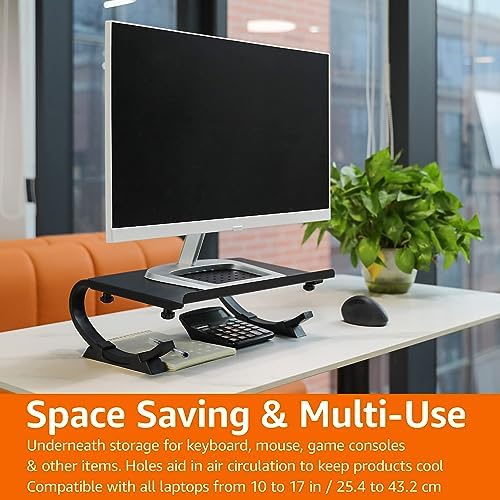 Amazon Basics Adjustable Laptop Stand Riser, for Monitors and Laptops up to 22 Pounds, Black