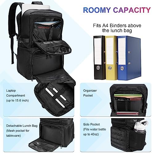 BERTASCHE Lunch Backpack, Laptop Backpack 15.6 inch Work Backpack w/Insulated Cooler Lunch box for Men Women, Casual Daypack for Work Commuter Picnic College