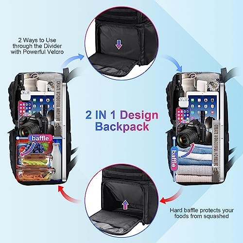 BERTASCHE Lunch Backpack, Laptop Backpack 15.6 inch Work Backpack w/Insulated Cooler Lunch box for Men Women, Casual Daypack for Work Commuter Picnic College