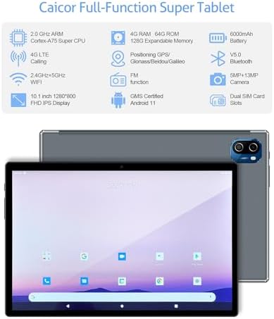 Be the first to review “CAICOR 3 in 1 Tablet 2024 Newest 10.1 inch Android 11 Tablets 4G Cellular Tablet with Keyboard 4GB+64GB and 128GB Expandable, 5MP+13MP Dual Camera, Dual Card Slot, GPS WiFi Bluetooth FM Mouse Stylus”