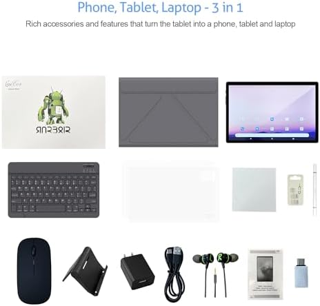 【Phone, Tablet, Laptop – 3 in 1】 The android tablets has 4G LTE calling capabilities and is equipped with dual SIM card slots. It also supports dual-band WIFI (2.4G+5G), positioning function (GPS/Glonass/Beidou/Galileo), FM and Bluetooth 5.0. With a foldable protective case + Bluetooth keyboard + wireless mouse, you can easily turn your tablet into a laptop. (Note: SIM card not included. Please refer to the product description for SIM card network support.)