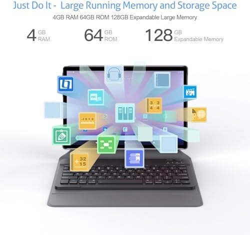 【Bigger and Longer Lasting】With 4GB RAM, 64GB internal storage, and expandable storage up to 128GB, you’ll have plenty of space for all your favorite apps, games, and media. Equipped with a 6000mAh battery, the android tablet provides up to 8 hours of support for reading, browsing, watching movies, and playing games.