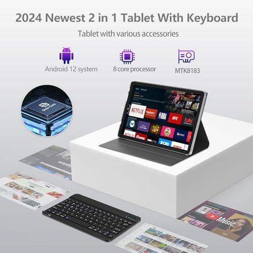 【16GBRAM + 128GB ROM + 1TB Expand】:The Android tablet has 16GB ( 8GB Physical + Expanded 8GB Virtual ) RAM for smooth multitasking, 128GB ROM internal storage and expandable storage up to 1TBWhich makes it can stores a large number of e-books, movies,music, photos, games, files and more apps. It is Google GMS certificated, you can download your favorite APPS from Google Play Store such as Netflix,Tik Tok ,Facebook, Twitter, YouTube,etc. Forget storage worries, enjoy your tablet to the fullest with more multimedia and efficiency.Whether you are working, studying, or entertaining, this tablet with keyboard can meet all your needs.