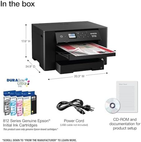 Epson Workforce Pro WF-7310 Wireless Wide-Format Printer with Print up to 13″ x 19″, Auto 2-Sided Printing up to 11″ x 17″, 500-sheet Capacity, 2.4″ Color Display, Smart Panel App, Medium,Black