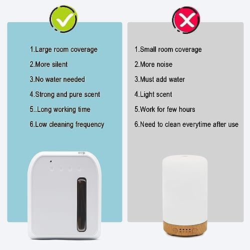 Large Capacity & Coverage: This scent air machine has a smaller volume and at the same time has a larger essential oil bottle which capacity is up to 800ml, making it able to work for up to 2-3 monthes at most situation. Euipped with a powerful air pump and fan inside, the diffuser can cover up to 2000-3000 sq ft, perfect for creating a wonderful and relaxing ambiance for your bedrooms, bathrooms, office room, spa room or some commercial space.