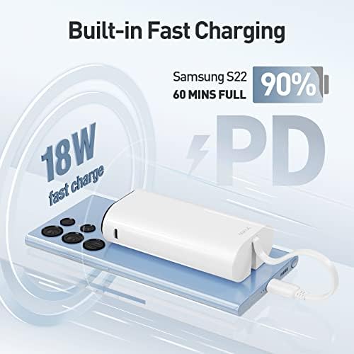 iWALK Portable Charger USB-C with Built-in 18W PD Fast Charging Cable & LED Display, 9600mAh[2024 Upgrade] PD Small Battery Pack Power Bank Compatible with Samsung S23, S22, Pixel 7,LG,Note