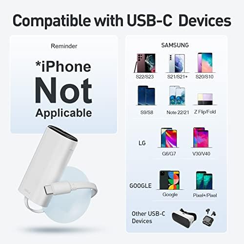 Built-In USB-C Cable: iWALK power bank with a built-in USB-C cable eliminates the need for carrying around extra cables, effortlessly charging all your USB-C devices on the go.
