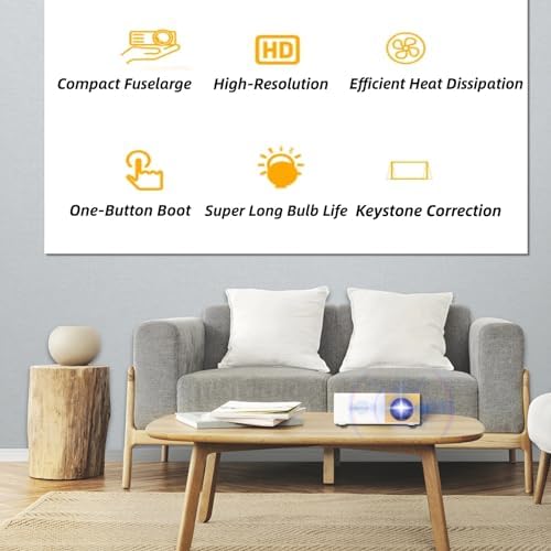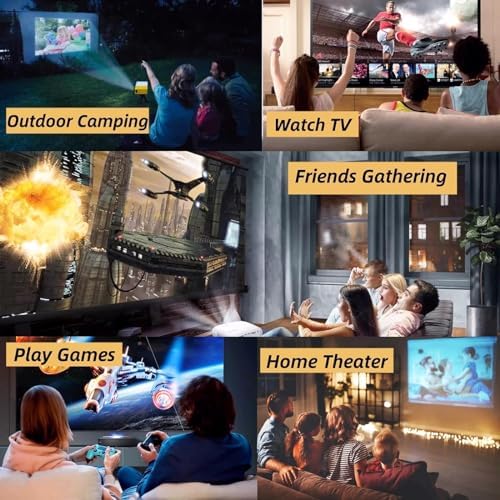 【Multiple Sizes】This HD projector supports projection sizes from 24 to 60 inches and projection distances from 4.9 to 6.6 feet, you can enjoy movies, videos and games whether at home or outdoors in your yard, traveling, camping, etc.