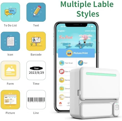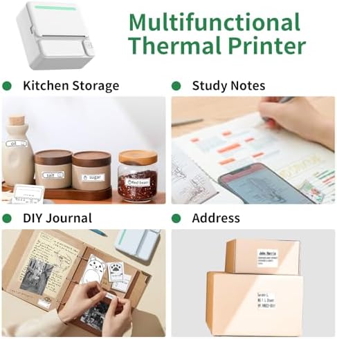 🖨️【Multifunctional Mini Printer】The mini printer is widely used and supports printing storage labels, sticky notes, QR codes, scrapbooks, diaries, lists, memos, photo printing, web page printing. The APP offers a variety of free templates and themes for you to choose from to meet your various needs.