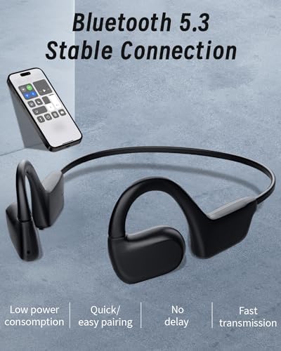 [Bluetooth 5.3 and Easy Control] This open ear wireless headphones features with bluetooth 5.3 technology, more faster connection and more stable transmission. With slight press of the physical function buttons, you can freely switch music, adjust volume and handle phone calls.