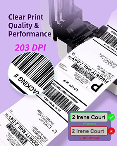 High-definition Thermal Printer – With the resolution up to 203DPI, our barcode label printer ensures that the contents of each label are crystal clear, which makes the label easy to scan and read. Advanced Thermal Direct technology prints require no ink or toner, saving hundreds of dollars in your life and work.
