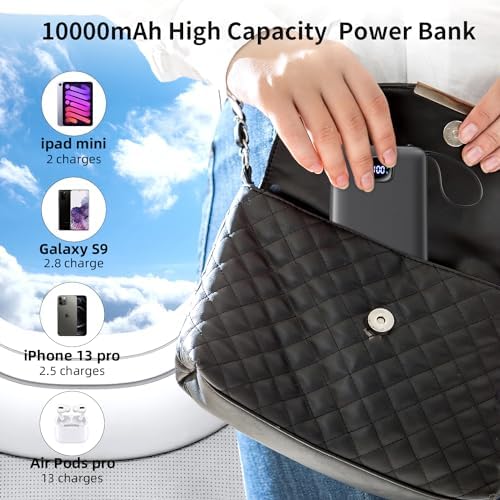 ๐ Large Capacity: Despite its compact size of only 5.76 *2.72* 0.68 inch and lightweight design weighing just 8.1 ounce, this portable charger boasts a generous capacity of 10000mAh. It easily fits in your pocket or travel bag, making it ideal for on-the-go charging during airplane travel or outdoor activities. Experience the convenience of having a reliable power source wherever you are.