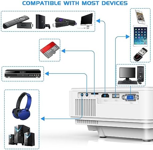 [Wide Compatibility and Application] Equipped with HDMI, VGA, AV, USB interfaces, the projector is compatible with TV Box, TV Stick, PCs, Laptops, Tablets, USB Flash Drive, players. It’s supposed to apply many environment—Home Theater, Video Game, Party, Outdoor activities. You can use it for small meeting in dark room, but it is not a professional office projector for PPT or text. As the copyright, some videos (such as Netflix) can’t be played via phone connection (wifi or usb).