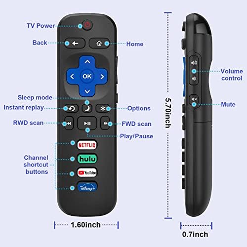 ❌NOT for RO-KU STICK or PLAYER❌【NOTE: This is NOT a RO-KU Remote! ONLY compatible with ROKU TCL TVs, for ROKU Philips, for ROKU ONN, for ROKU Hitachi, for ROKU Element, for ROKU Haier, for ROKU LG, for ROKU Sanyo, for ROKU JVC TVs!】 With 4 shortcut buttons Netflix, Hulu, Youtube and Disney.