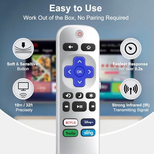 【Compatible with RoKu TVs Only】Remote Control Only for Roku Series TVs, Compatible with TCL Roku TVs/Onn Roku TVs/Hisense Roku TVs/Philips Roku TVs/Westinghouse Roku TVs/Sharp Roku TVs/Insignia Roku TVs/JVC Roku TVs/RCA Roku TVs/Hitachi Roku TVs and Sanyo Roku TVs Element Roku TVs Series.