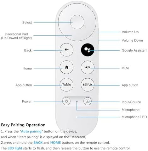 【High Quality】The replacement remote control of the Chromecast 4K Snow device has the same functions and performance as the original remote control, with comfortable grip and stable signal.