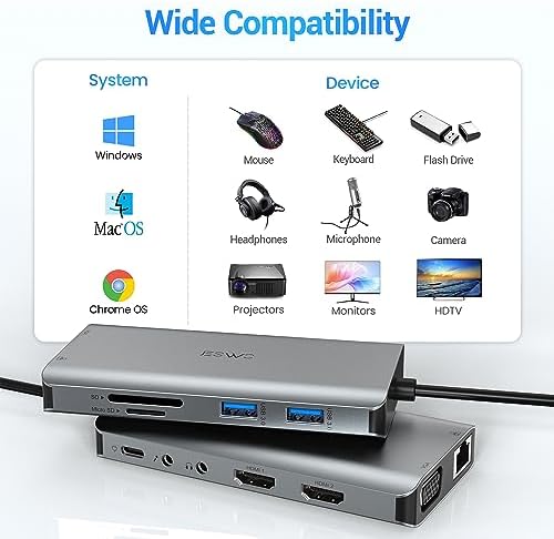 Compact and Versatile: Made of sleek aluminum enclosure with a full spectrum of ports in a compact body; compatible with Windows11/10/8, macOS and Chrome OS; this universal dock is perfect to your daily demands.