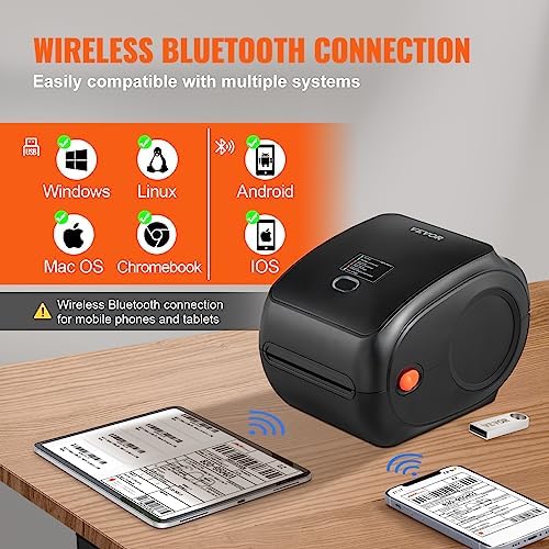 📦[BLUETOOTH/USB CONNECTION] : Vevor bluetooth thermal label printer improved on the USB connection to connect wirelessly to your phone via Bluetooth. This label printer is compatible with IOS, Android, Windows, Mac OS, Linux, and Chromebook. ⚠️NOTE: wireless connection is not available for PC, if you need to connect to PC, please connect via USB. And for Chromebook that requires an Flashlabel Extension, detailed steps are available in the ‘Installation Manual’ at the bottom of the page.