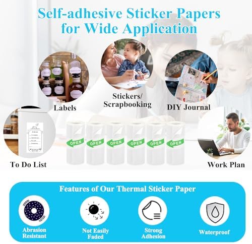 【6 Rolls of Sticker Paper】The mini printer sticker paper has a wide range of applications. They are waterproof and highly adhesive, allowing you to easily print labels, to-do lists, stickers, and more. Print whatever you need and stick it anywhere, unleashing your creativity at any moment