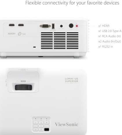 LAN CONTROL: Schedule, and manage the projector remotely with Crestron, AMX, Extron, PJ Link, ATEN, and ViewSonic’s vController