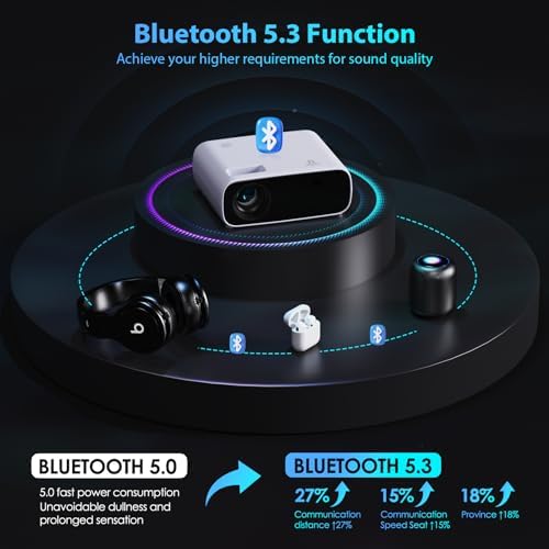 ✔【BLUETOOTH AND WiFi FUNCTION】 The Bluetooth projector supports WiFi projection, 5G+2.4G dual-band WiFi for faster and more stable transmission, especially when playing X-box, PS4/5, Switch and other games, you can enjoy smooth viewing and gaming experience. Bedroom projector Built-in Bluetooth 5.0 chip, you can instantly connect wireless Bluetooth headphones or speakers, providing you with crisp and clear sound and excellent listening experience.