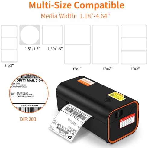【Shipping Tabel Printer Tip】: The label paper needs to be made of thermosensitive paper.Calibrate paper: Press and hold the feed button for 2 seconds, hear a beep, and release the button.